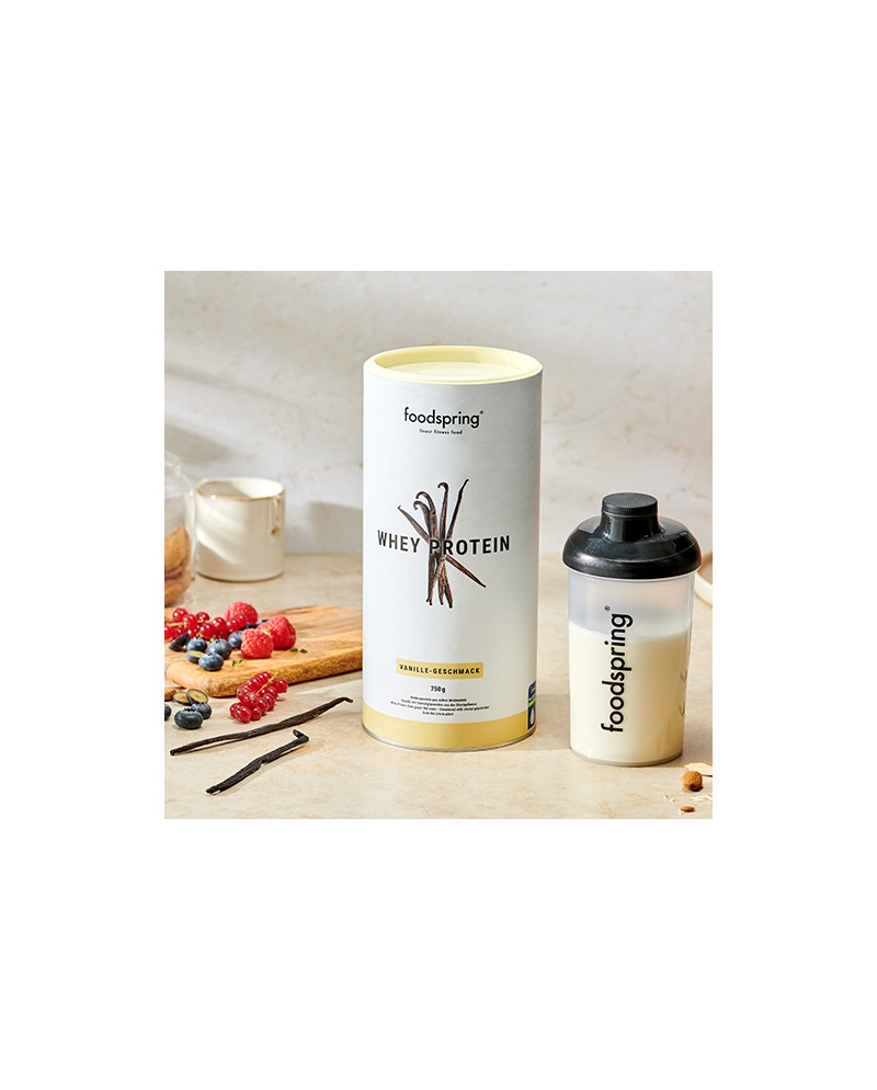 Preparato in polvere da proteine del siero di latte concentrate ed isolate per la preparazione di bevande proteiche. Con dolcificanti. Contiene 25 porzioni.