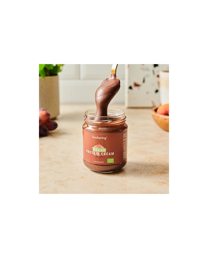 Crema spalmabile bio alla nocciola e al cacao con proteine vegetali. Con zuchero ed edulcorante.