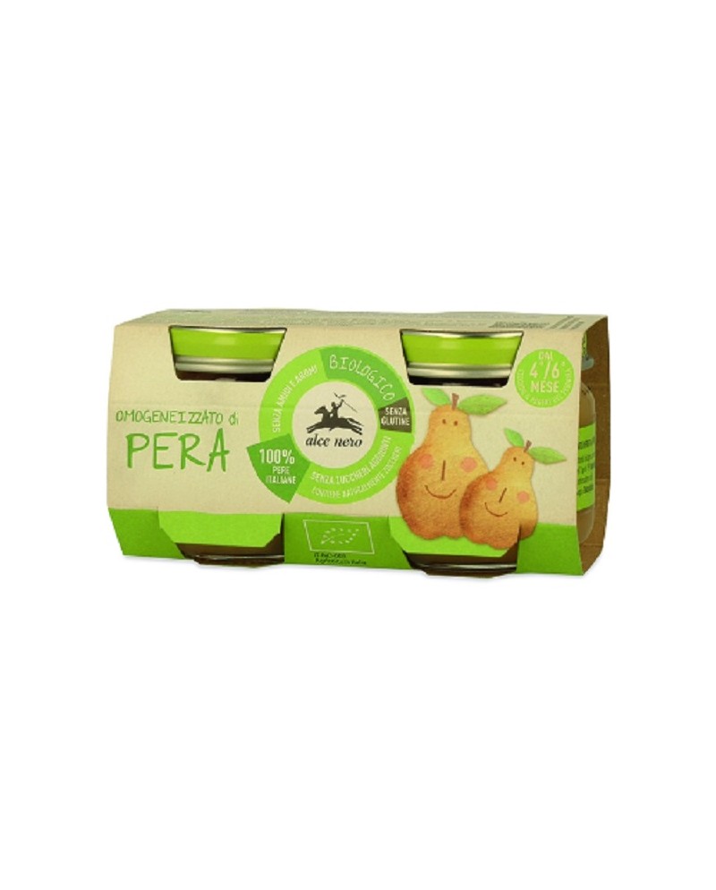 Omogeneizzato di pera "Alce nero" 2x80g. Alimento biologico per l'infanzia di alta qualità, senza glutine, coloranti e conservanti.