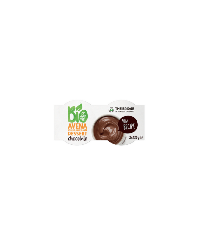 Dessert d'avena e cacao "The Bridge" in confezione da 2x130g. Mousse biologica, gustosa e genuina, prodotta con avena biologica, zucchero di canna e prodotti naturali. Altamente digeribile.