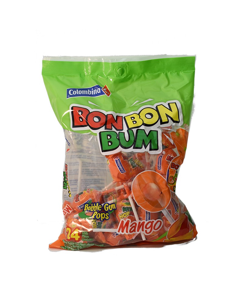 Bon bon bun mango 408g. Lecca-lecca al gusto di mango con ripieno ddi chewing-gum. Un palato in festa per grandi e piccini.