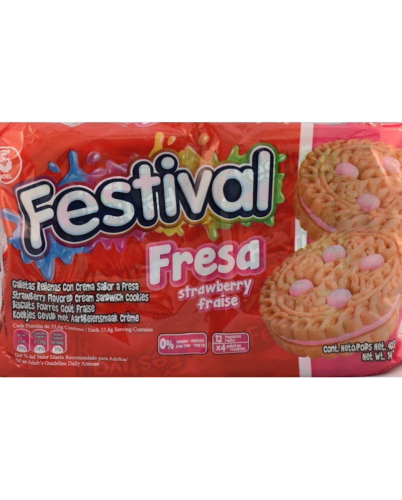 Gran Festival fresa biscotti farciti di crema alla fragola Noel in confezione da 403g.