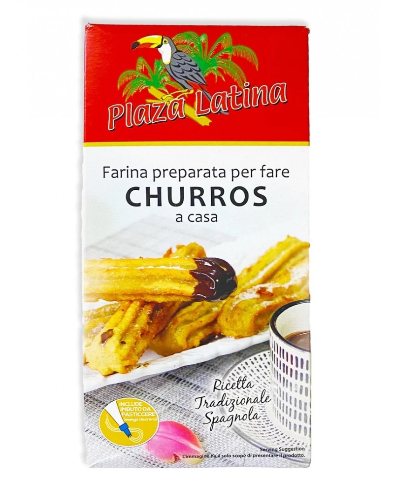 Il Preparato per Churros Plaza Latina in confezioneda 500g. E' una miscela di ingredienti premiscelati (spesso chiamata "farina") pensata per semplificare la preparazione casalinga dei churros. I churros sono dolci tipici spagnoli e latinoamericani: bastoncini striati a base di pasta choux, fritti e tradizionalmente serviti con zucchero o intinti in cioccolata calda o Dulce de Leche. Questo preparato facilita l'ottenimento della consistenza e della croccantezza tipica dei churros.