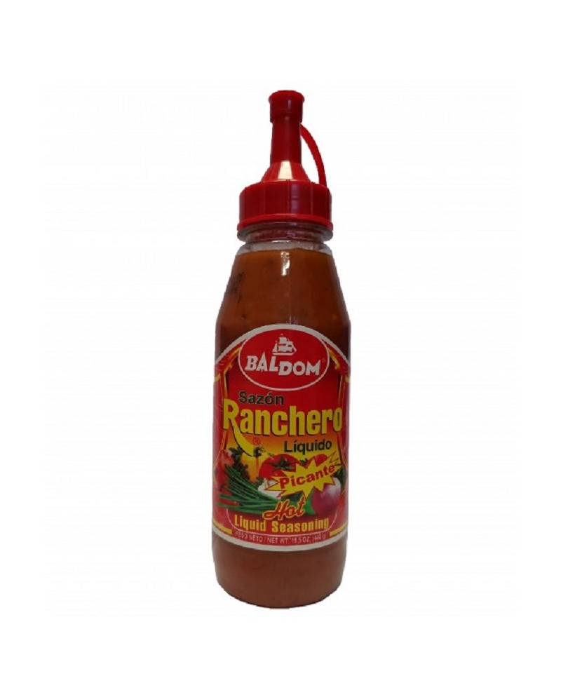 Sazon Ranchero piccante condimento liquido Baldom in bottiglietta da 440g. Piccante e travolgente. Ideale per dare una spinta in più a carni e arrosti.
