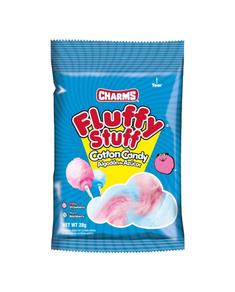 Le Charms Fluffy Stuff Cotton Candy sono l'essenza del Luna Park racchiusa in un pratico sacchetto da 28g. A differenza dello zucchero filato preparato al momento, questa versione è sigillata in uno speciale involucro anti-umidità che ne preserva la leggerezza e la consistenza "nuvola" fino all'apertura.