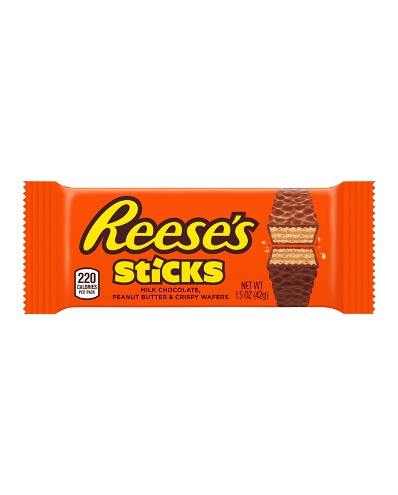 Reese's sticks wafer confezione da 42g. Reese's Stick non è altro che un wafer ricoperto con cioccolato al latte e burro d'arachidi Reese's per uno snack 100% bontà disponibile da Cristaldi con consegna rapida.
