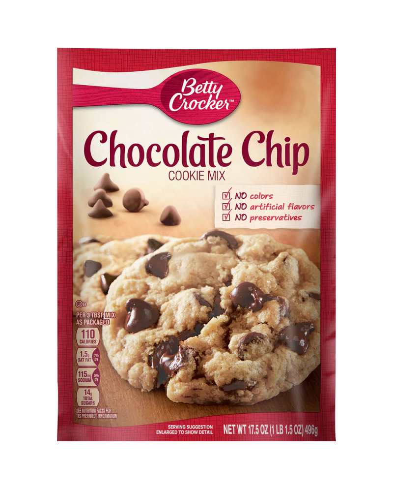 Betty crocker chocolate chips preparato da 496g. Preparato di alta qualità per realizzare biscotti morbidi e friabili con un invitante gusto cioccolatoso. Disponibile da Cristaldi con consegna rapida online.
