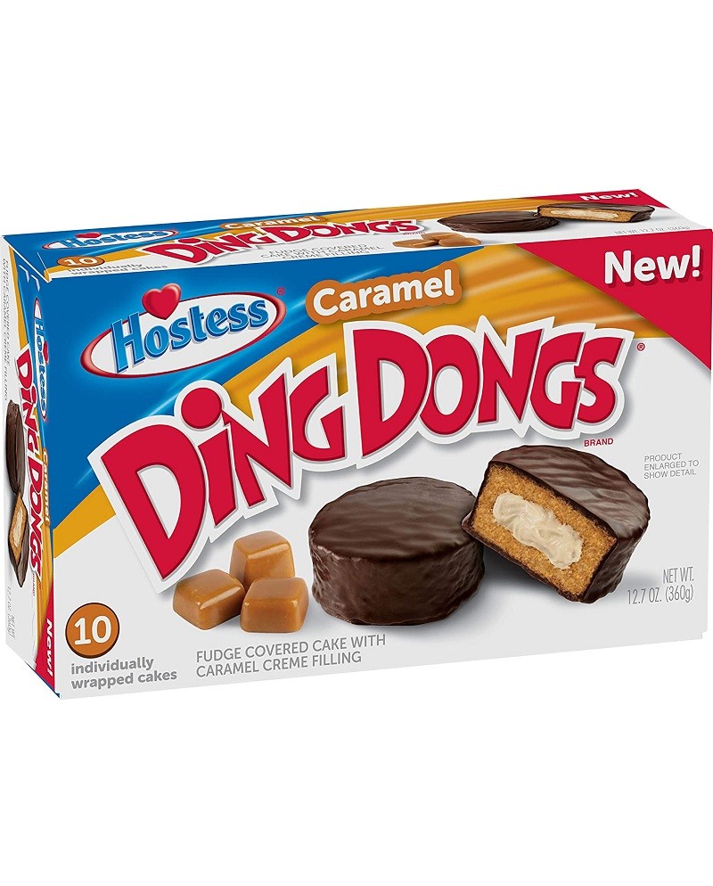 Hostess ding dongs merendine al caramello da 360g. Merendine di pan di spagna al cioccolato ripiene di crema e caramello soffici e golose!
