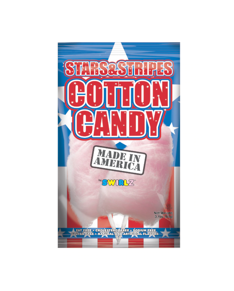 Star & stripes cotton candy zucchero filato, confezione da 88g. Al gusto ciliegia e lampone rispettivamente di colore rosso e blu, queste candies ti faranno sentire un vero americano! Provale da Cristaldi!