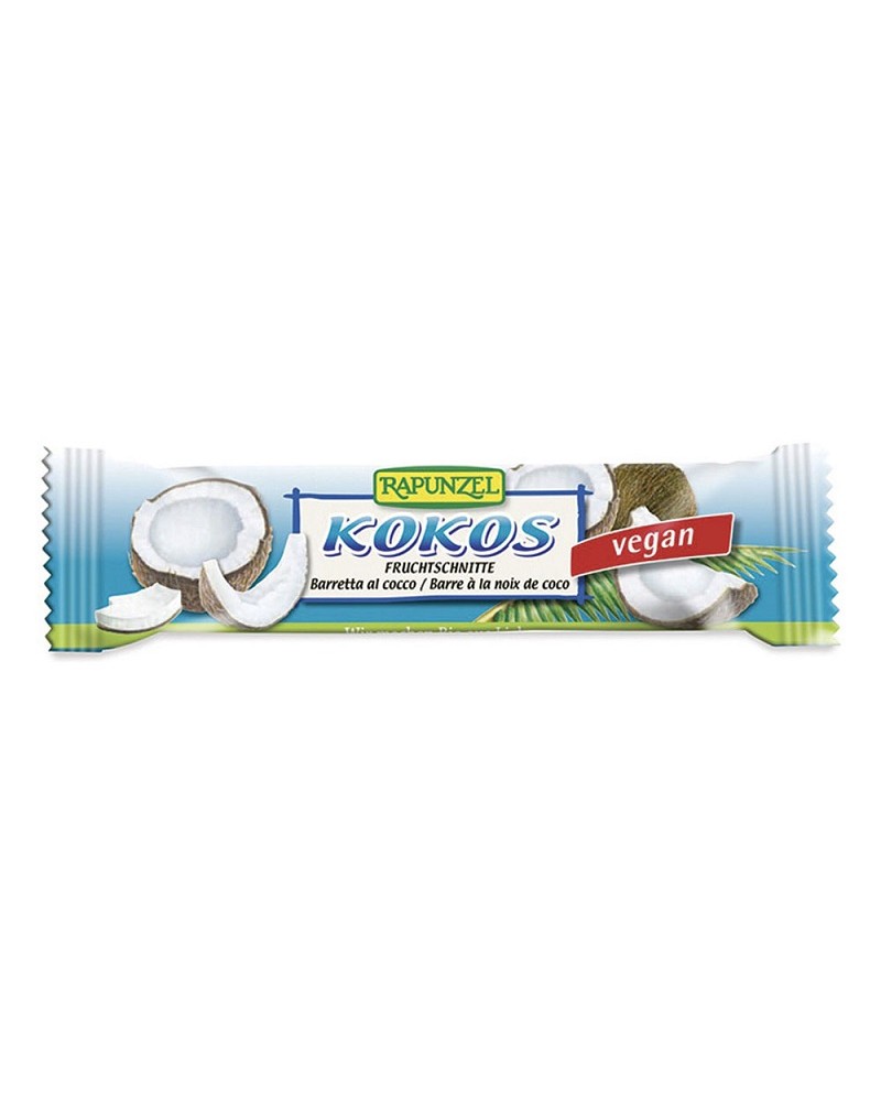 Barretta al cocco "Rapunzel" da 25g. Snack salutare indicato in ogni momento della giornata. Con ben il 47% di cocco, dolcificato con sciroppo d'agave di riso.