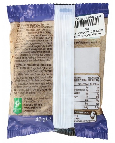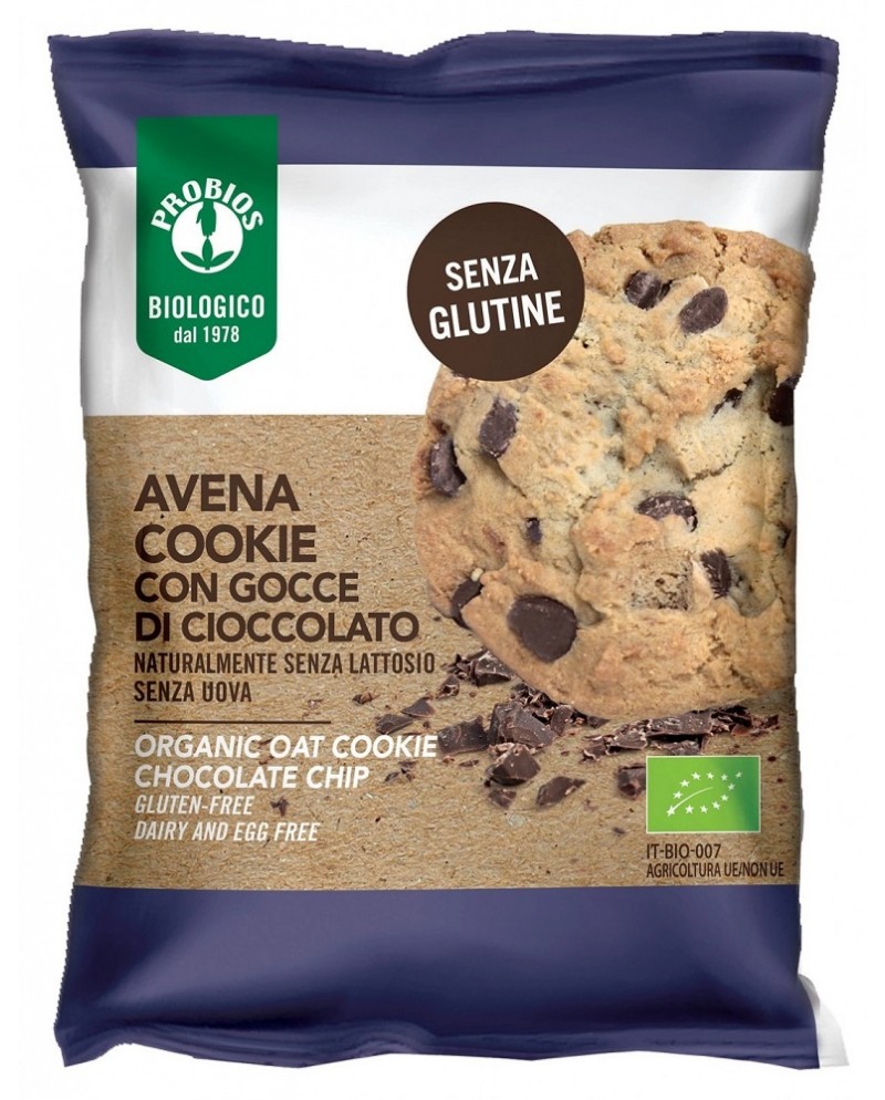 Avena cookie con gocce di cioccolato senza lattosio e uova 40g Probios
