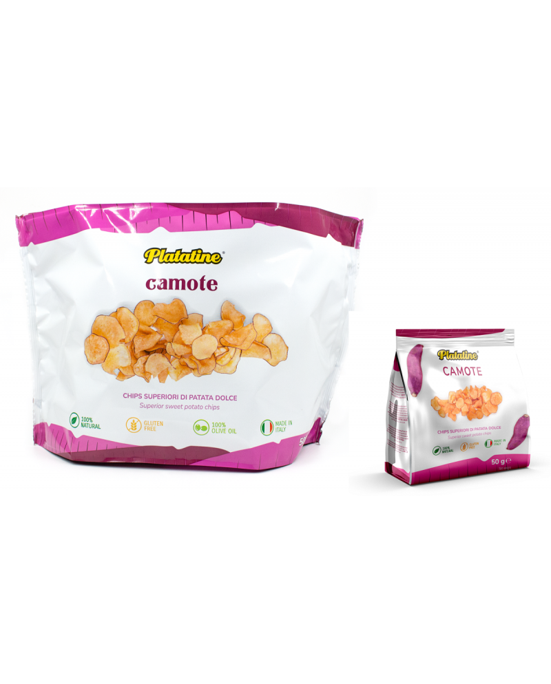 Realizzate seguendo un rigoroso processo artigianale, sono avvolgenti chips di batata