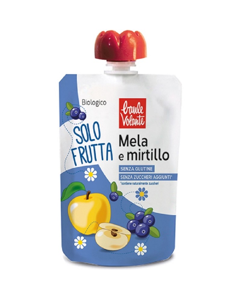 Solo frutta mela e mirtillo "Baule Volante" da 100g. Con purea di mela e mirtillo, da agricoltura biologica.
