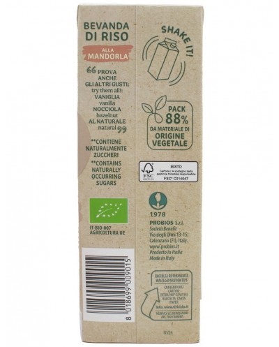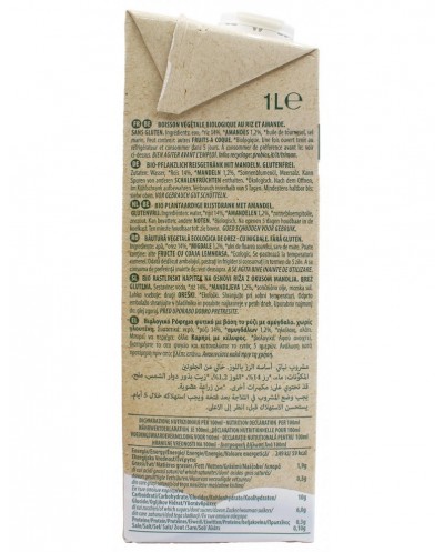 Ingredienti: acqua, *riso 14%, *MANDORLE 1,2%, *olio di semi di girasole, sale marino.* biologico