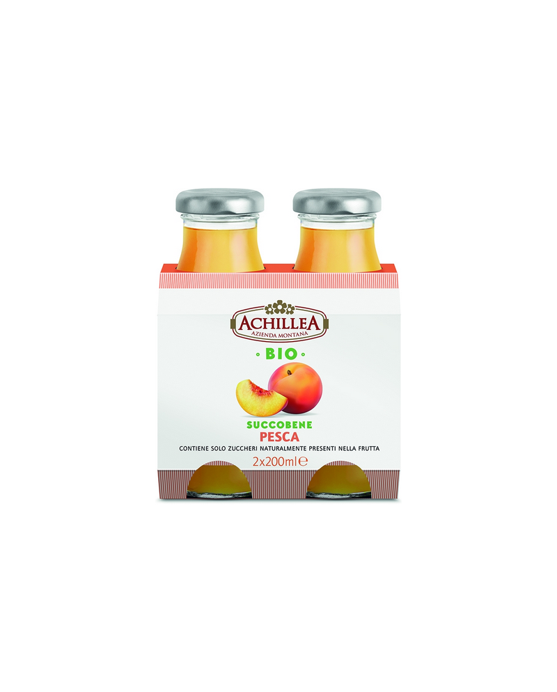 Succo bene pesca bio Achillea in confezione da 2x200ml. Delizioso succo ottenuto dalla spremitura di pesche fresche e biologiche.