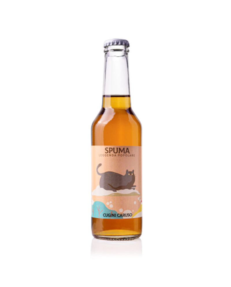 Spuma Caruso in bottiglia di vetro da 275ml. Tradizionale ma allo stesso tempo innovata da aromi pregiati. Ideale durante un aperitivo, specialmente con il vino, per una nuova esperienza.