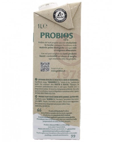 Il Latte di Mandorle Probios è una fresca e gradevole bevanda vegetale. Prodotta con mandorle 100% italiane, è senza zuccheri aggiunti e garantita senza glutine. Provala per dare un gusto unico alla tua colazione e nella preparazione di salse, budini e dessert.