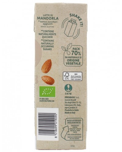 Latte di mandorla senza zuccheri e senza glutine 1lt Probios
