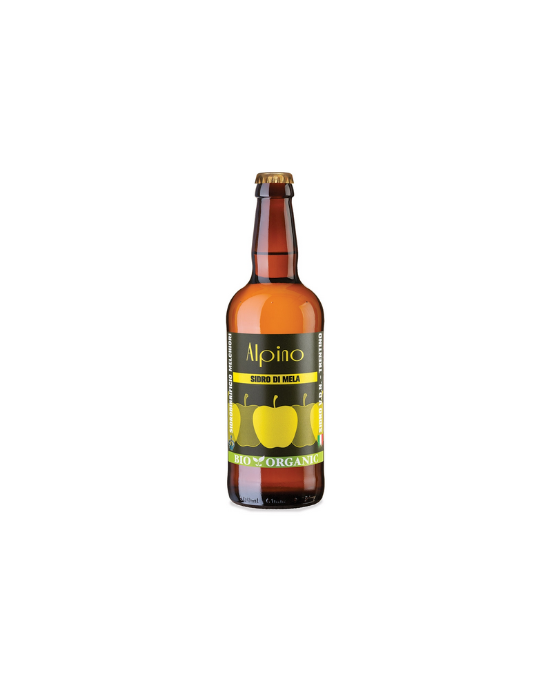 Sidro di mele alpino Melchiori in bottiglia di vetro da 500ml. Concentrato di mele e sidro prodotto da agricoltura biologica, perfetto per chi desidera una serata dal gusto leggero e dalla frizzante fragranza.
