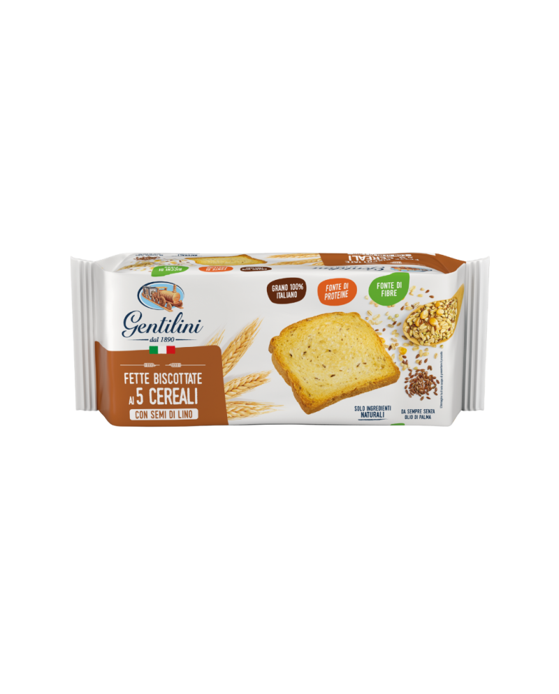 Fette biscottate 5 cereali con semi di lino 185g Biscotti Gentilini