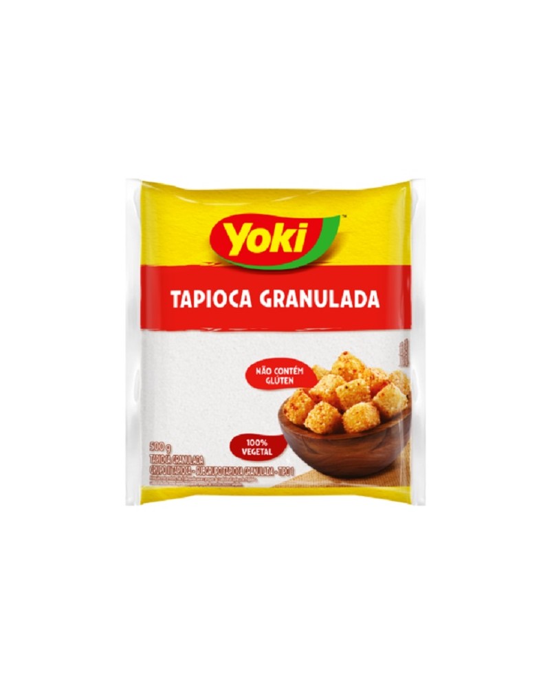 La Tapioca Granulata Yoki 500g. Amido puro estratto dalla radice di manioca (o cassava), lavorato in forma di granuli (o fiocchi) bianchi, simili al sago. È un alimento base della cucina brasiliana, ideale per preparare dolci come il cuscuz de tapioca, torte e il famoso dadinho de tapioca (dadini fritti di tapioca e formaggio). È naturalmente senza glutine e priva di grassi e colesterolo.