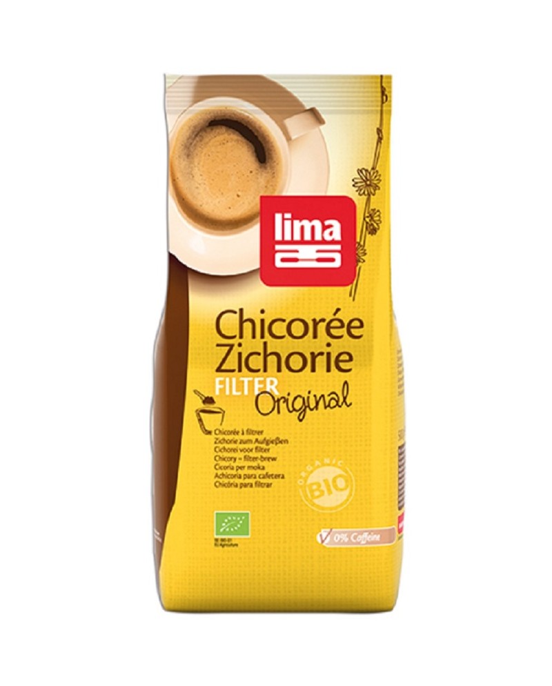 Cicoria torrefatta per moka "lima" in confezione da 500g. Cicoria biologica senza caffeina. Ottimo sostituto del caffè, con proprietà digestive e disintossicanti.