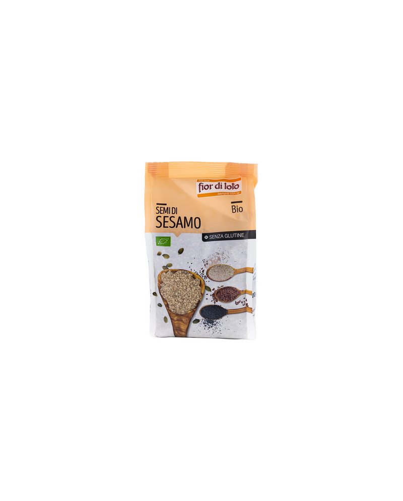 Semi di sesamo Fior di Loto in confezione da 400g. Ottima fonte di grassi, proteine e vitamine i semi di sesamo favoriscono il corretto funzionamento del sistema cardiovascolare. Da impiegare come condimento o da includere in zuppe o insalate.