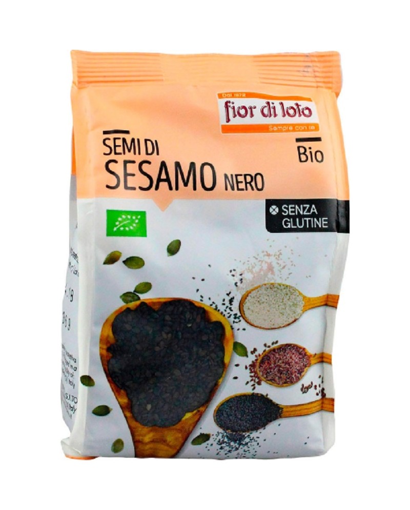 Semi di sesamo nero bio Fior di loto in confezione da 250g. Varietà scura dei semi di sesamo dal sapore più intenso ricca di grassi, fibre, proteine e minerali. Da utilizzare come condimento a insalate, riso o verdure.
