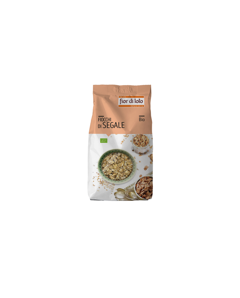 Fiocchi di segale "Fior di loto" in confezione da 500g. Dal sapore intenso e robusto, ideali sia in piatti dolci che salati. Da impiegare nel porridge o per la preparazione di prodotti da forno dolci o salati.