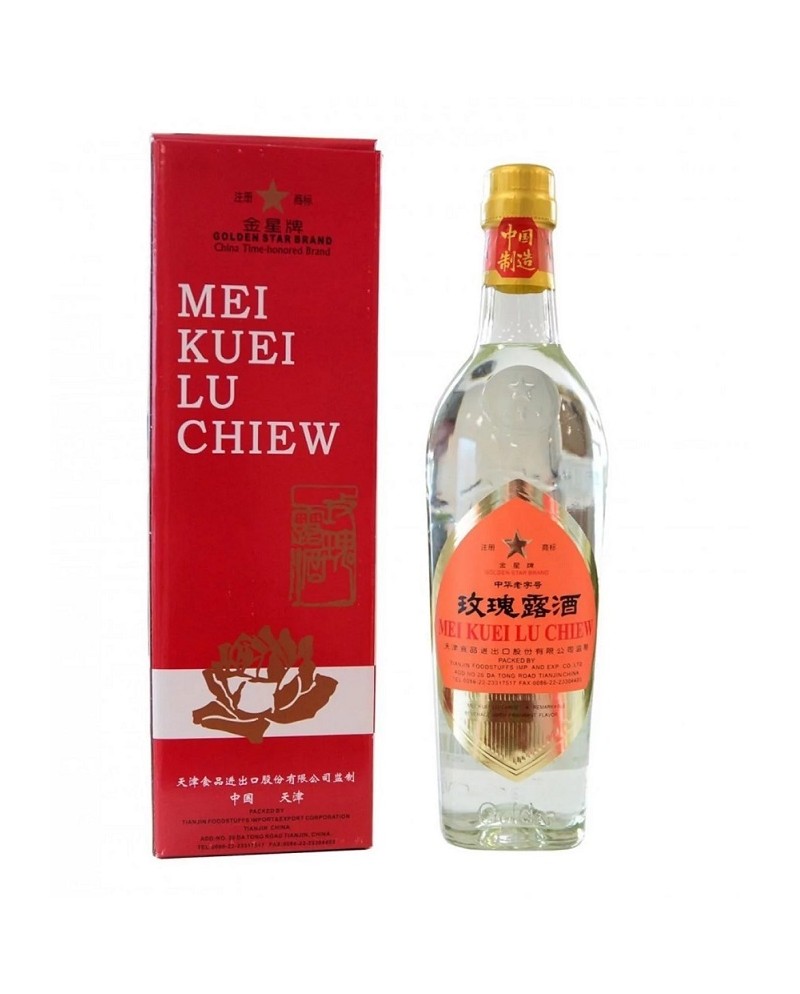 Liquore rosa mei kuei lu chiew in bottiglia da 50cl. Pregiata grappa di rose cinese. Ideale a fine pasto.