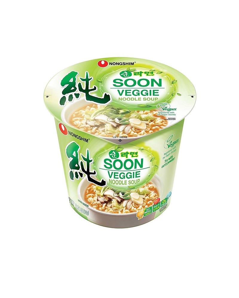 Nongshim cup veggie noodle da 67g. Il Nongshim Cup Veggie Noodle da 67g è la versione istantanea in tazza di una zuppa di noodles completamente vegetariana/vegana. Si distingue per il suo brodo leggero, pulito e saporito, ricavato esclusivamente da un mix di verdure fresche e spezie, senza l'aggiunta di carne o frutti di mare. È un'opzione popolare per chi segue diete vegetariane o cerca un sapore più delicato e non piccante.