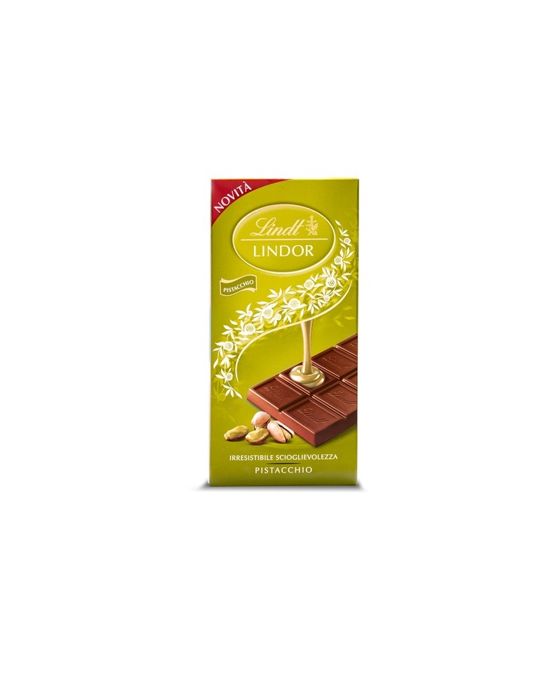 Ingredienti: Cioccolato al latte con morbido ripieno al pistacchio. Ingredienti: zucchero, burro di cacao, grasso vegetale (cocco, palmisti), LATTE intero in polvere, pasta di cacao, LATTE scremato in polvere, LATTOSIO, pasta di PISTACCHI (1,3%), aromi, emulsionante (lecitina di SOIA), estratto di malto d’ORZO. Può contenere NOCCIOLE ed altra FRUTTA A GUSCIO. Esterno: Cioccolato al LATTE - Cacao: 30% minimo. SENZA GLUTINE.
