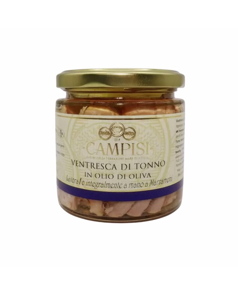 La ventresca, la parte più pregiata del tonno rosso, è un vero tesoro culinario. Ottenuta dalla porzione più grassa dell'animale che avvolge la cavità addominale, i fasci muscolari intrecciati con il grasso conferiscono alla carne una morbidezza e un sapore straordinari.
