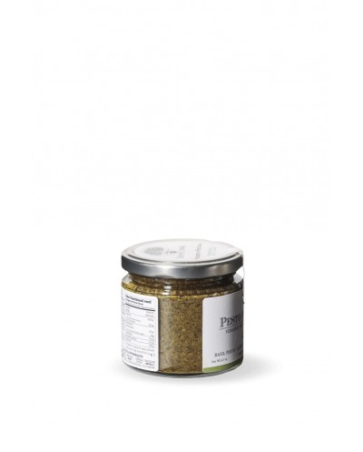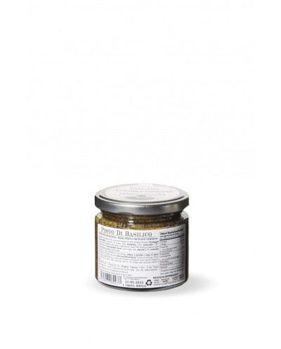 Ingredienti: Basilico siciliano, Mandorla di Avola, Pistacchio siciliano, Formaggio Ragusano DOP, Aglio Rosso di Nubia, Sale marino di Sicilia, Olio extra vergine di oliva Gran Cru Tonda Iblea.