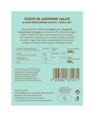 Filetti di acciughe salate in olio extra vergine di oliva igp sicilia 120g Testa