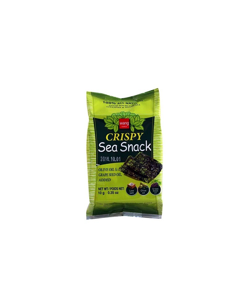Le Crispy Sea Snack Wang sono un popolare snack a base di alga marina nori tostata e condita. Le alghe vengono leggermente spennellate con olio di sesamo e un pizzico di sale, quindi tostate fino a raggiungere una consistenza estremamente croccante e leggera. Sono un alimento diffuso e apprezzato in Corea (dove sono chiamate Gim) e in tutto il mondo per il loro sapore salato, umami e la loro alta nutrizionalità.