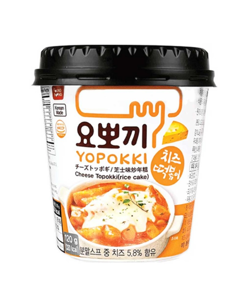 Gli Yopokki Tteokbokki Cup al Formaggio sono gnocchi di riso coreani istantanei (Tteokbokki) immersi in una salsa cremosa e saporita al gusto di formaggio. Offrono un sapore ricco e confortante, popolare sia tra gli adulti che tra i bambini. Si preparano in pochi minuti aggiungendo acqua calda e riscaldando al microonde.