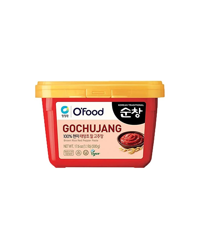 Il Gochujang è una pasta densa, di colore rosso intenso, ottenuta dalla fermentazione di peperoncini rossi coreani (Gochugaru), riso glutinoso e fagioli di soia fermentati. È il condimento piccante per eccellenza della Corea.