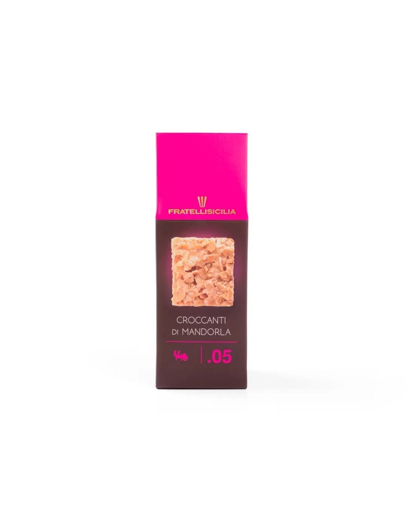Il Croccante di Mandorla di Fratelli Sicilia è un dolce tradizionale e semplice, noto per la sua consistenza croccante e il suo sapore intenso di mandorla tostata. È composto principalmente da mandorle intere o in pezzi, caramellate con zucchero e sciroppo di glucosio. È un prodotto da forno artigianale, perfetto da gustare come snack energizzante o come accompagnamento per un fine pasto.