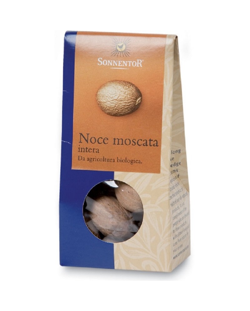 La Noce Moscata Intera Bio di Sonnentor è una spezia dal sapore intenso, caldo, dolce e legnoso che viene grattugiata al momento dell'uso per preservarne l'aroma. È un ingrediente classico per insaporire salse (come la besciamella), purè di patate, zuppe, ripieni e per dare un tocco speziato a dolci e bevande invernali.