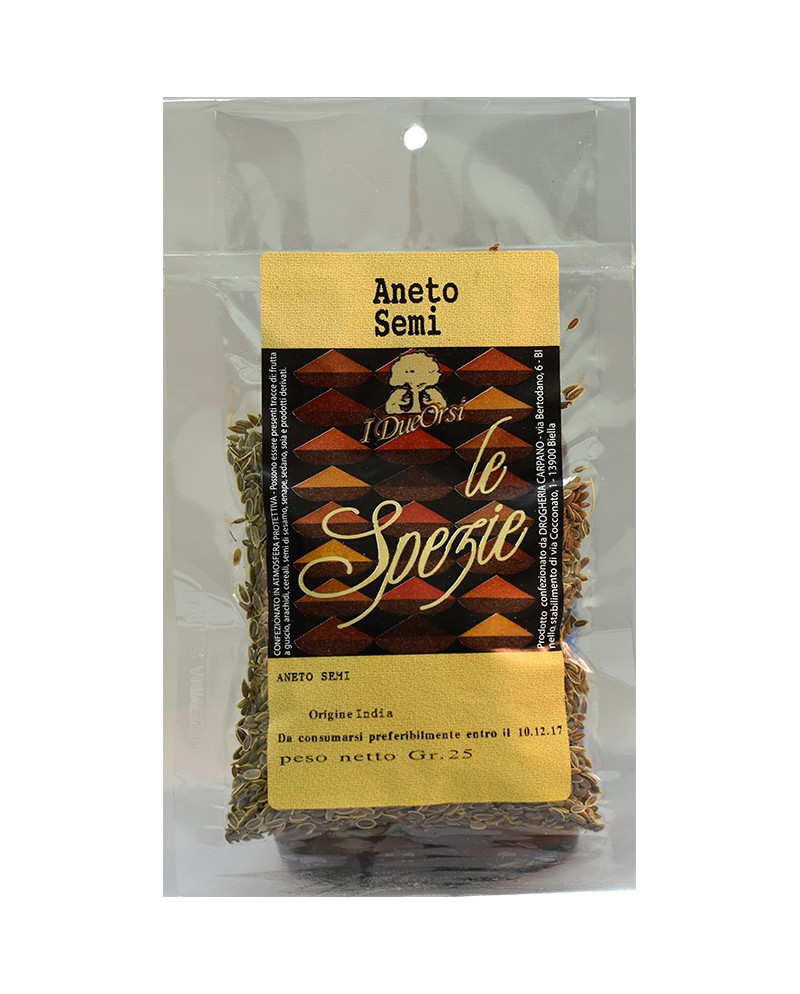 Semi di aneto I due Orsi in confezione da 25g. Dalle proprietà carminative, antispasmodiche, diuretiche e depurative i semi di aneto sono perfetti per la preparazione di infusi ricchi di benessere.
