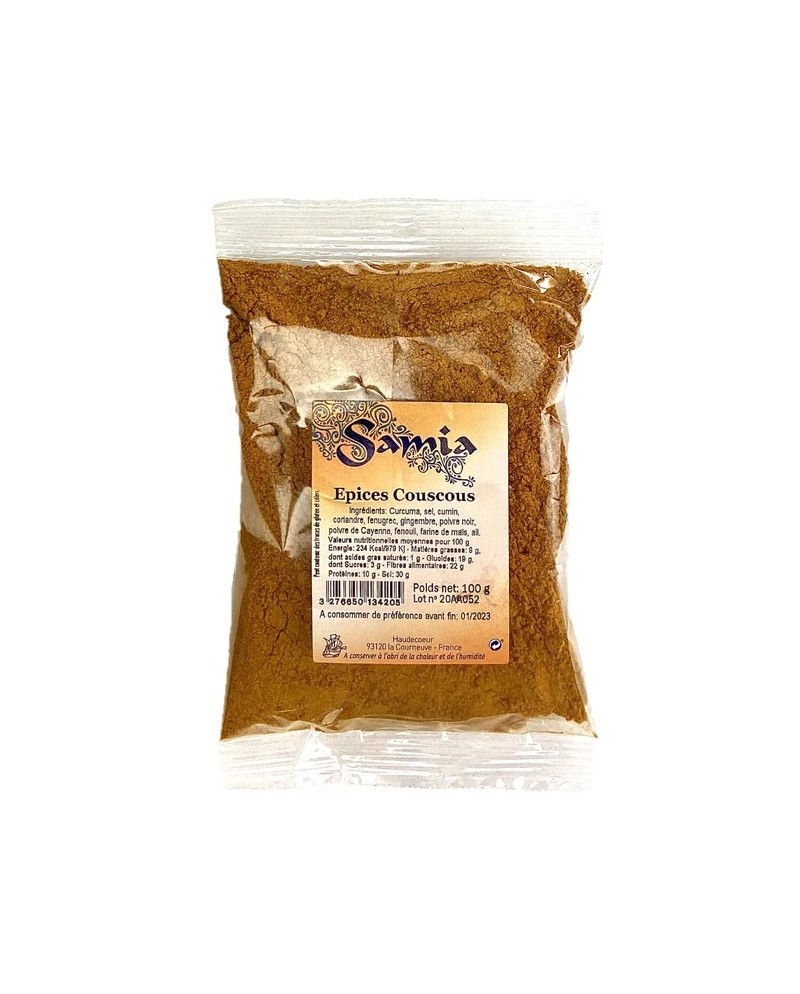 Spezie per couscous Samia in confezione da 100g. Mix di spezie ideale per insaporire piatti a base di cous-cous.