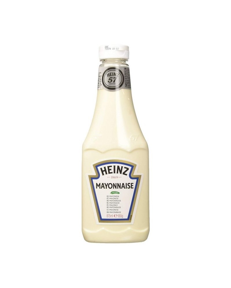 Heinz maionese da 875ml. La maionese eccellente Heinz è prodotta con uova di gallina da allevamento a terra, conservata in bottiglia di plastica con tappo dosatore richiudibile.