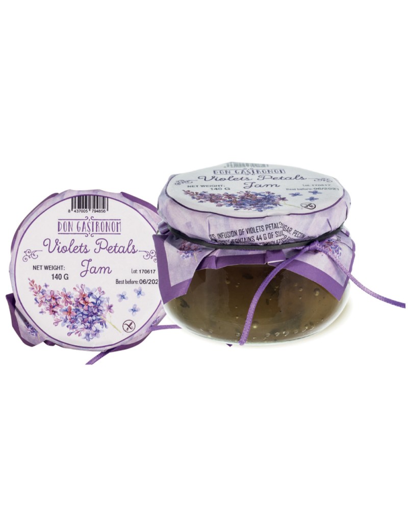 Ingredienti: Infuso di petali di violetta (55%), zucchero, gelificante: pectina, acidificante: acido citrico.