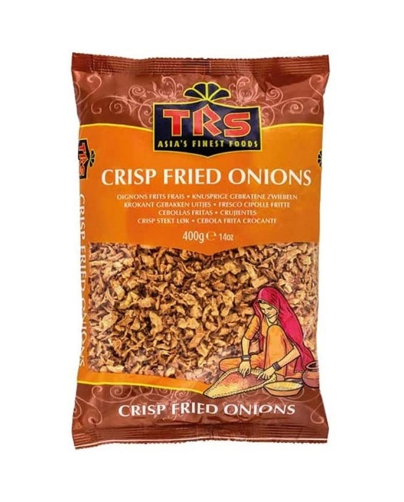 Trs cipolle fritte in confezione da 400g. Deliziose cipolle croccanti ideali da sgranocchiare o da impiegare in piatti come il sushi o il pokè.