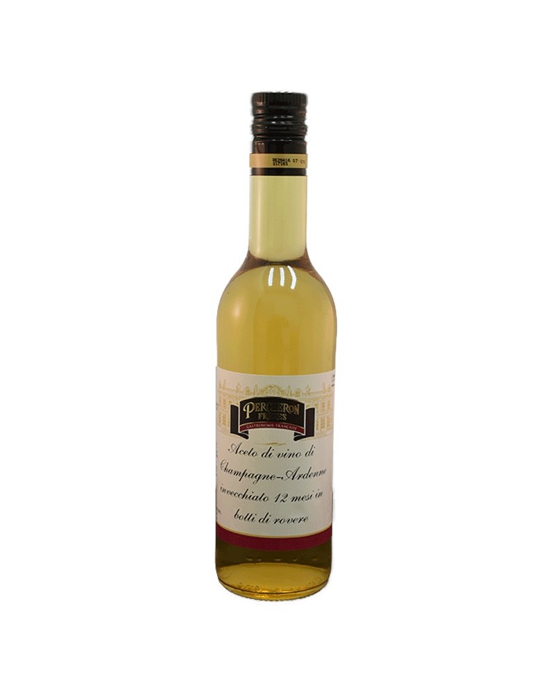 Aceto di champagne Percheron in bottiglia da 50cl. Prodotto con un procedimento naturale, affinato 12 mesi in botti di rovere.