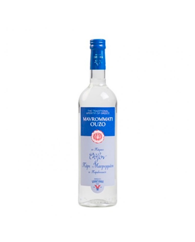 Ouzo Mavrommati in bottiglia da 70cl. L'ouzo è un liquore aperitivo tradizionale greco dal caratteristico aroma di anice. E’ ottenuto dalla distillazione multipla delle uve, unitamente a semi di anice e ad una miscela selezionatissima di erbe aromatiche, utilizzando piccoli alambicchi tradizionali.