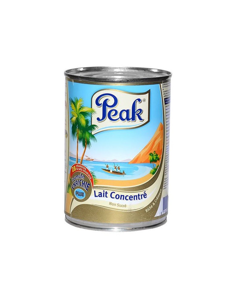 Peak latte evaporato in scatola da 410g. Latte non zuccherato denso e cremoso ideale per preparare dolci.