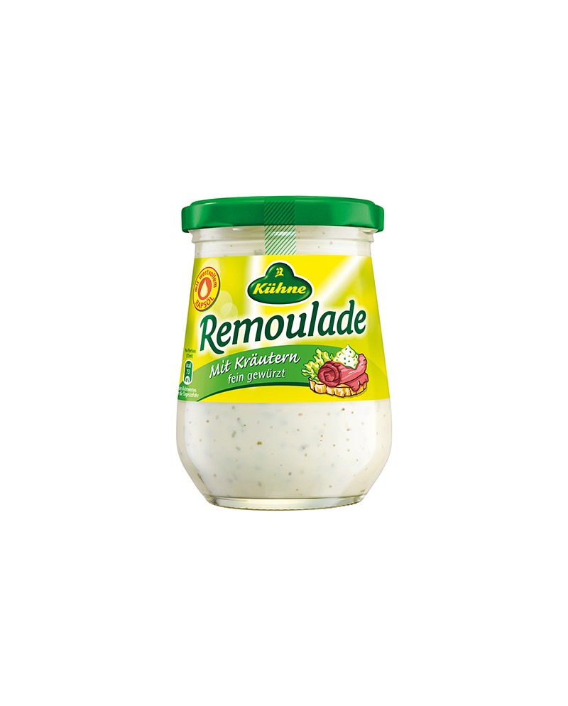 Remoulade salsa alle erbe di Khune in barattolo da 250ml. Salsa cremosa a base di maionese arricchita con diverse erbe aromatiche. È ideale per accompagnare piatti a base di pesce, uova sode, formaggi, e come condimento per panini e sandwich.