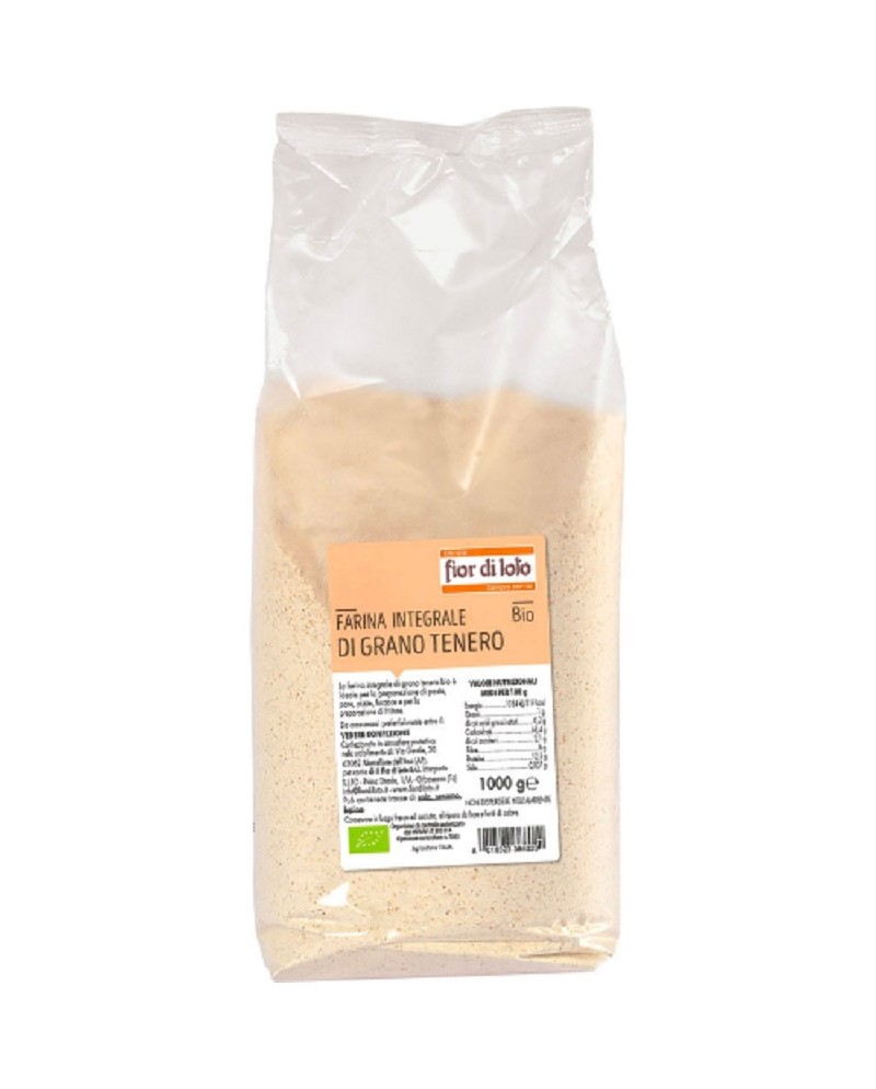 La farina di grano tenero deriva dalla macinazione e successivo raffinamento dei cariossidi (chicchi) del frumento, una pianta erbacea della famiglia delle graminacee. Gli usi della farina in cucina sono molteplici per la preparazione di pane, pasta, torte, dolci, ma occorre anche come addensante per salse o per la preparazione di carni e fritture. Si usa solitamente per preparare pane o pasta integrale. Ingredienti: Farina integrale di grano tenero bio. Modalità di conservazione: Conservare in luogo fresco e asciutto, al riparo da luce e fonti di calore. Le farine da cereali bio sono normalmente più delicate di quelle convenzionali. Se non conservate correttamente infatti si dimostrano più inclini a sviluppare "farfalle"